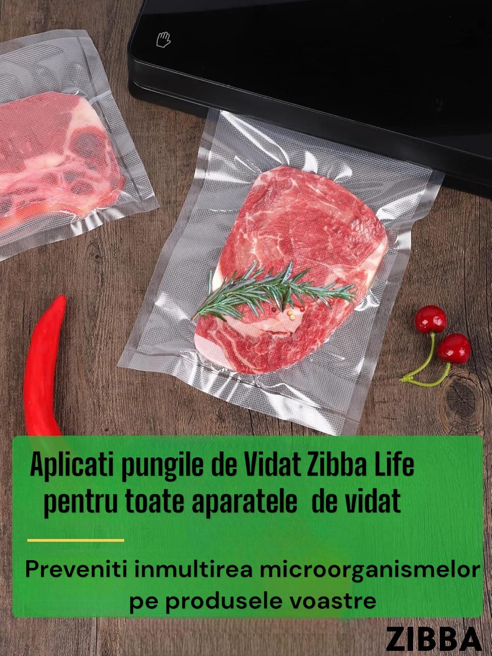 Pungile de vidat gofrate Zibba Life™ sunt esentiale pentru cei care doresc sa mentina prospetimea si calitatea alimentelor mai mult timp. Aceste pungi sunt folosite pentru sigilarea alimentelor in vid, prevenind contactul cu aerul, care poate provoca oxidare si alterarea rapida a acestora. Ideal pentru o varietate de produse, de la carne si peste, la legume, fructe si alimente gatite, pungile gofrate pastreaza gustul, textura si valoarea nutritionala a alimentelor.